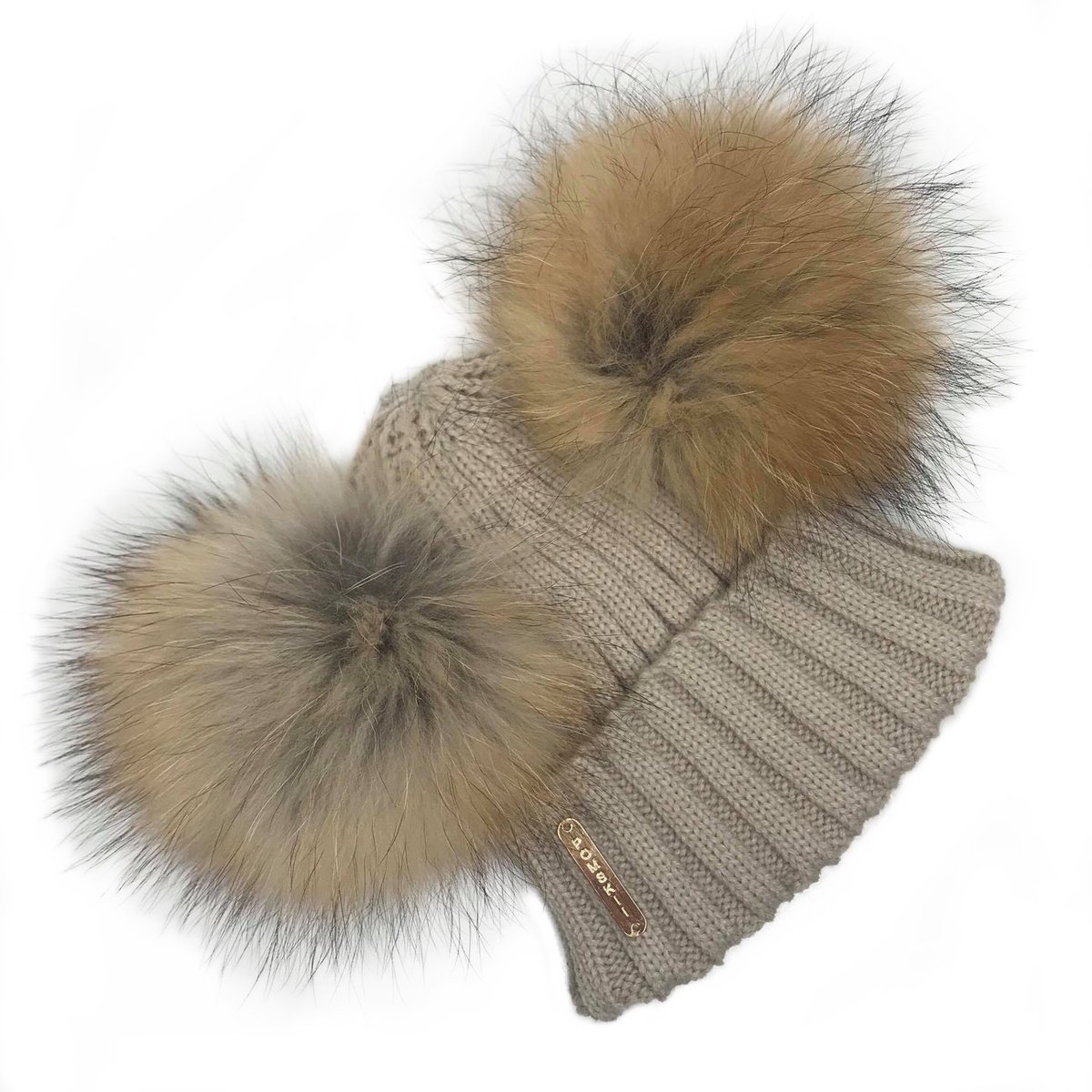 Beige Double Pomskii Hat